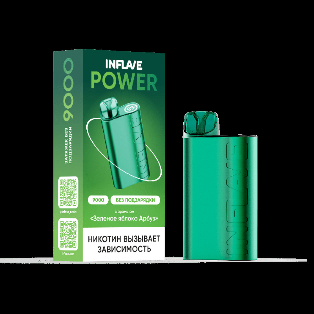 Электронная сигарета INFLAVE POWER 9000 затяжек Зеленое Яблоко Арбуз - купить в Новоуральске